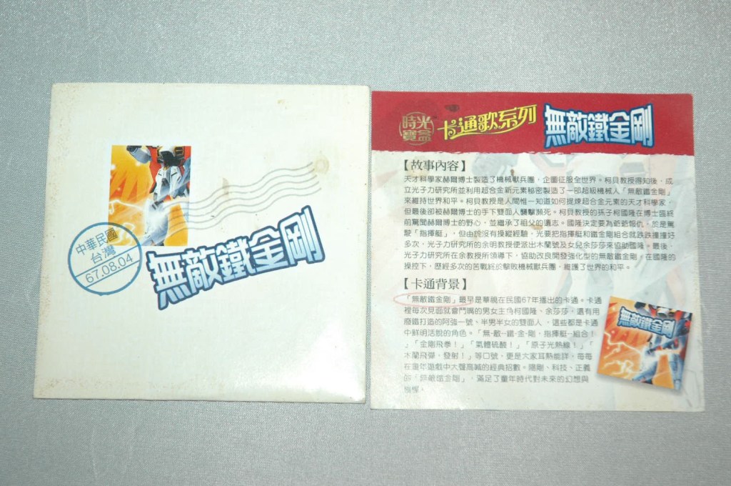 至68年02月28日在華視播出的"無敵鐵金剛卡通",便對我照造成巨大且深遠的正面影響,它讓我變得更堅強,更有智慧,更有膽量,不怕刀不怕槍,勇敢又強壯,最後終於戰勝最巨大的怪